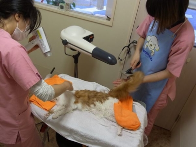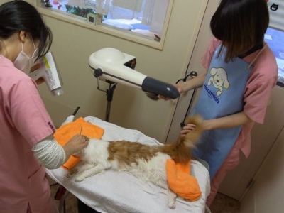 どうぶつ病院だからこそ出来る、獣医師とメディカルトリマーとの連携が特徴です。皮膚の湿疹、外耳炎などがあれば、直ちに治療を開始する事が可能です。